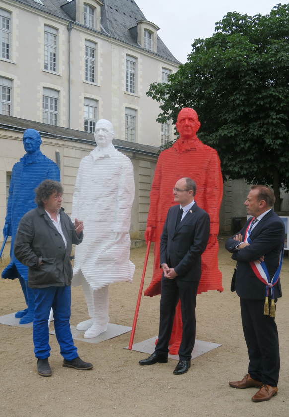 Intitulées « Charles de Gaulle, bleu, blanc, rouge », elles font chacune 2m60 de haut, chaque socle faisant 1 m sur 1 m.